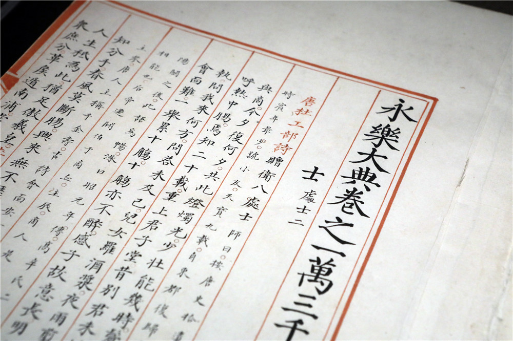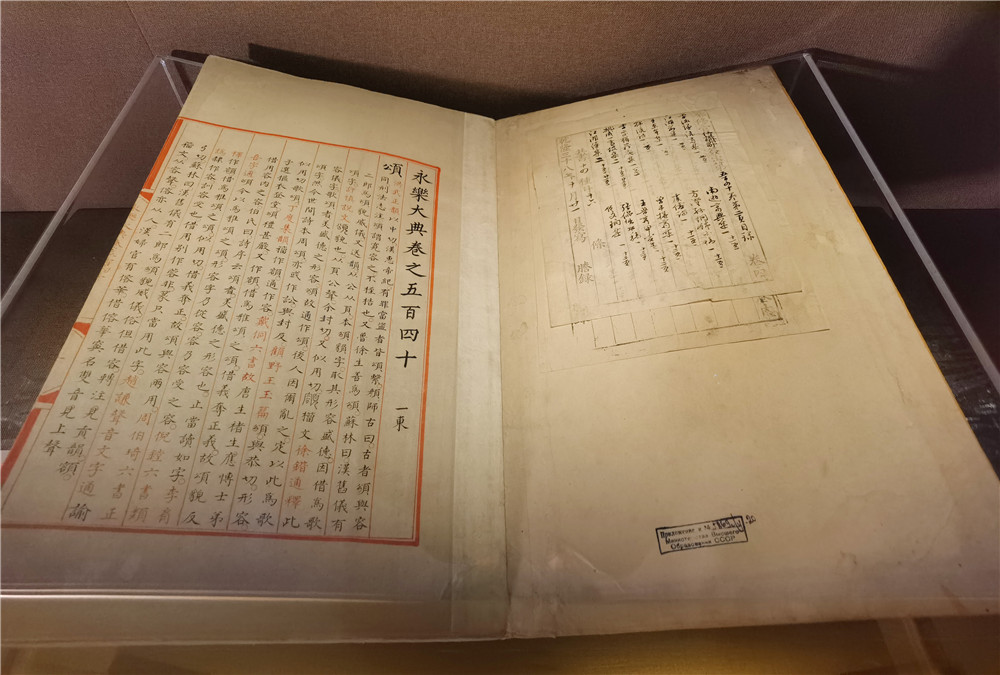 2021年6月1日,现场展出《永乐大典》嘉靖副本“颂”字册。据介绍,《永乐大典》嘉靖副本的“颂、溶、蓉、庸”字册,原藏苏联列宁格勒大学东方学系图书馆,送还中国后,1951年由中国文化部文物局拨交北京图书馆。