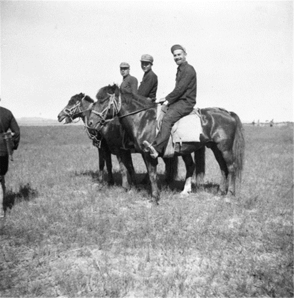这是1936年,斯诺(右一)在陕北采访途中(资料照片)。