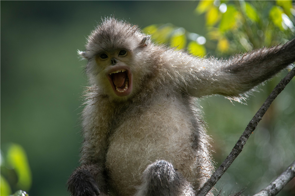 这是2020年5月23日在云南省迪庆藏族自治州香格里拉滇金丝猴国家公园里拍摄的滇金丝猴。(图片来源:新华社)