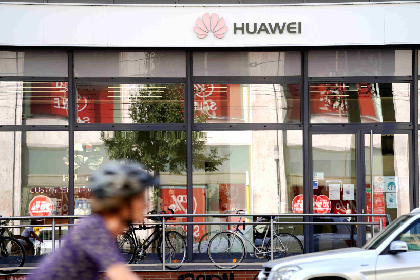 人们经过德国柏林市中心的一家华为售后服务中心。(图片来源:中新社)
