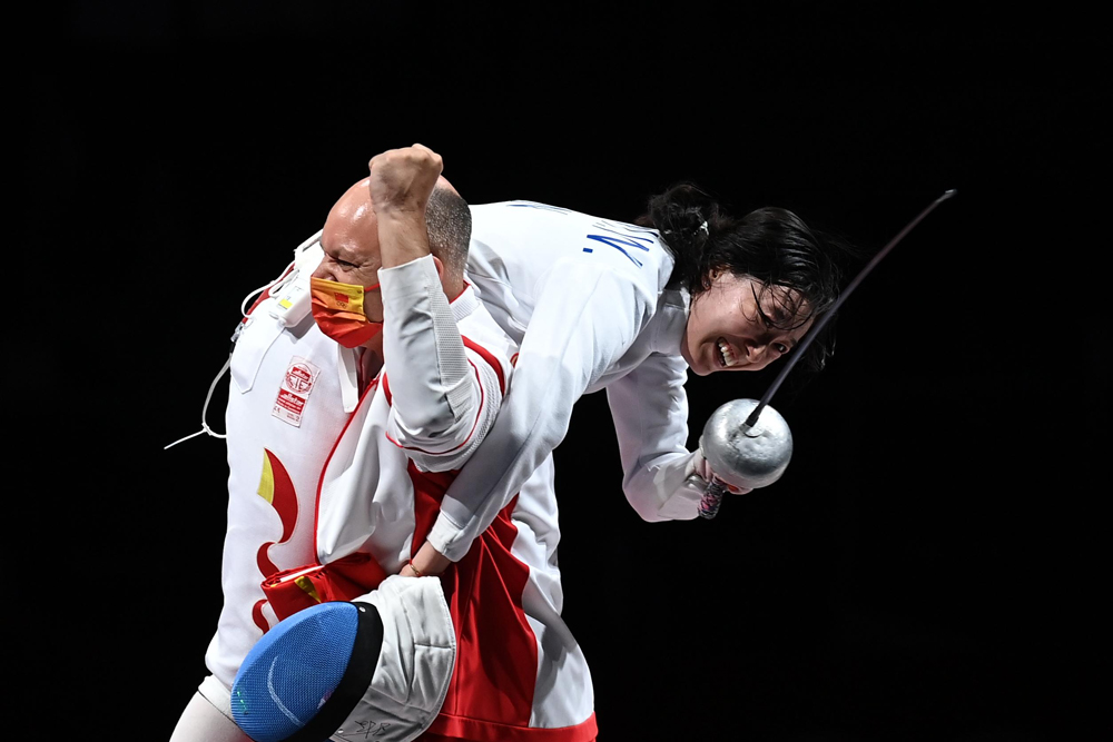 夺冠后,来自法国的中国重剑队外籍教练雨歌·欧伯利一把将爱徒扛在肩上,兴奋地跑满全场,这一举动被网友直呼“太可爱”,登上中国社交媒体热搜。