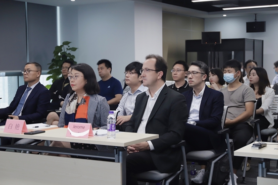 法国马赛港投资吸引力研讨会线下会场。中间人物为法国商务投资署商务参赞顾杰宏(Jérôme COUSTANS)。(图片来源:主办方供图)