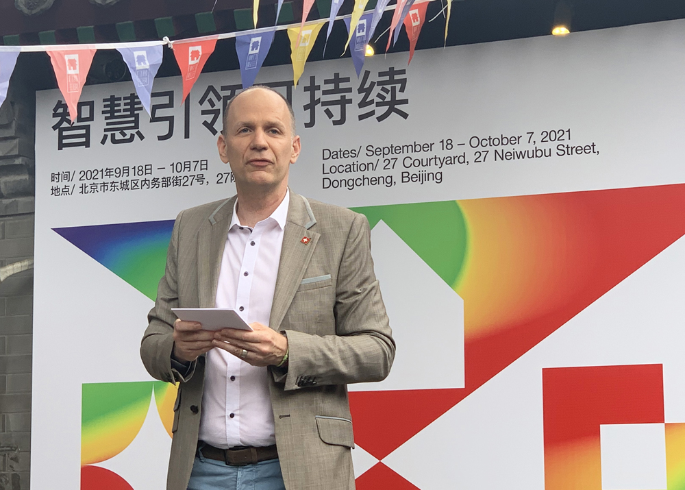 瑞士驻华公使沈鹤鸣(Thomas Stähli)在开幕式上介绍,此展览和论坛是“智慧引领可持续”系列活动中的一部分,其中另一主题展:“不为环境,何以建筑”阿尔卑斯山区可持续建筑作品展目前正在中国展出。