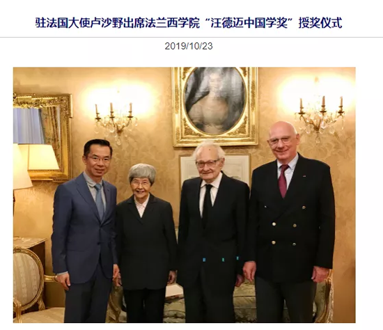 “汪德迈中国学奖”授奖。(图片来源:网页截图)