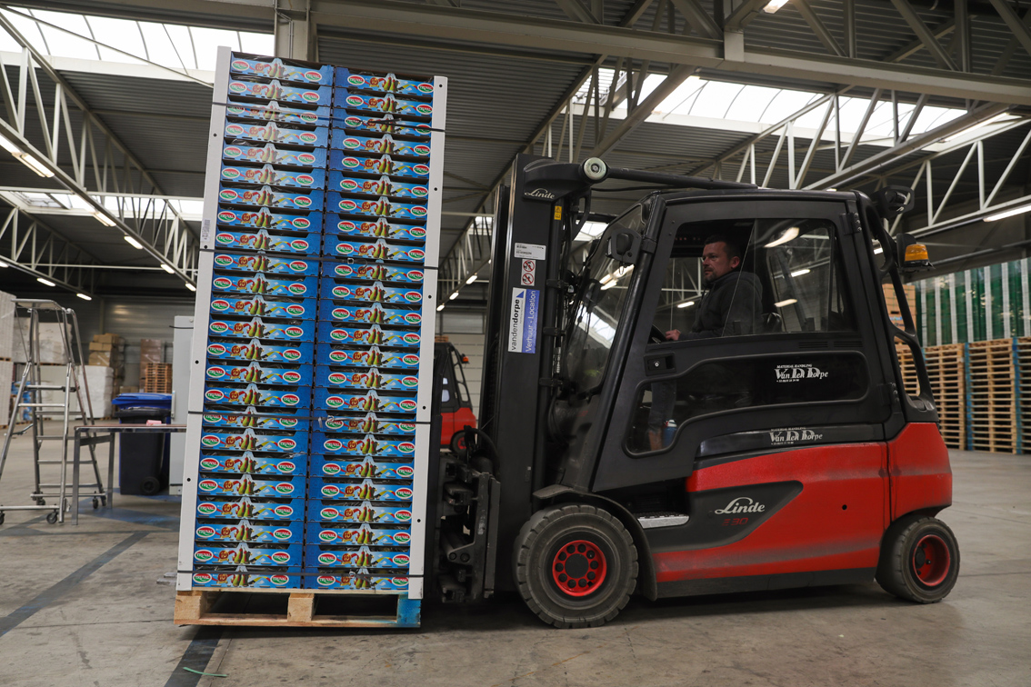 10月22日,在比利时弗拉瑟讷的比利时水果山谷协会,工作人员转运即将出口的啤梨。