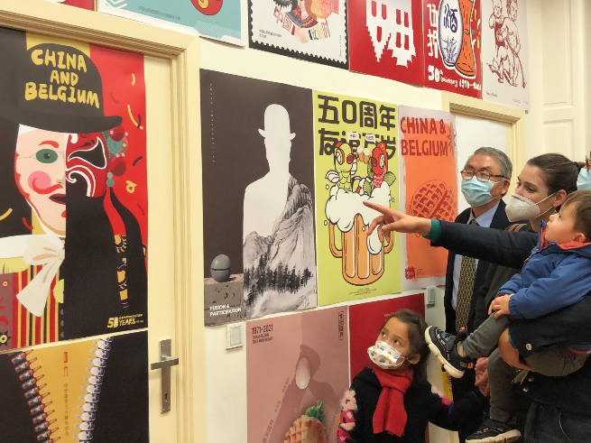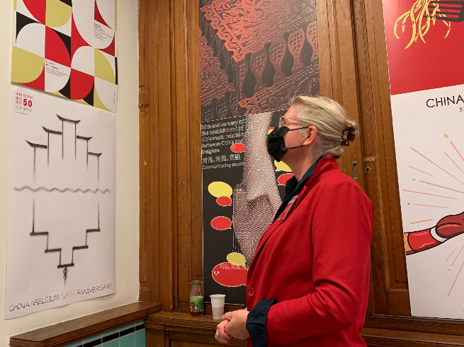 10月30日,中国与比利时建交50周年国际文化海报设计展在布鲁塞尔开幕。展出的海报选自“庆祝中比建交50周年”主题海报设计赛,展现中比两国的设计师对彼此文化的理解。