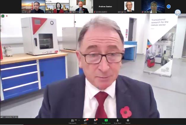 英国皇家工程院院长James McDonald爵士首先致开幕词,强调了工程技术与创新在全球绿色发展中的重要作用,呼吁关注气候变化对经济社会的挑战,如近期举办的《联合国气候变化框架公约》第26次缔约方大会(COP26),以及中国2060年的碳中和战略均涉及技术在改善气候变化的重要性。中英合作的最新动态包括皇家工程院(Royal Academy of Engineering)、英国科技部及中国工程院正在开发的去碳化技术。未来应继续深入中英学术界、工业界和政府部门机构的创新技术合作。中国科学院副院长张亚平院士在开幕词中提到中国和英国科研机构已签订了一系列合作协议,包括汽车和半导体等,并同样指出中英要深入开展技术合作及跨学科研究,建立国际智库。