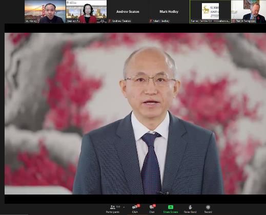 萨里大学副校长David Sampson教授强调中英在商业和高等教育合作的重要性,萨里大学正致力于在教育层面提供技术开发和创新合作的支持,发挥其在可持续技术、人工智能、数字技术等方面的优势,如新启动6G创新中心、国际可持续发展中心等。英中贸易协会首席执行官Andrew Seaton提到尽管存在地缘政治的紧张局势,中英在学术界和企业间的合作创新仍要持续。中英已在可再生能源、极端天气预测以及电池存储技术开展多项合作。这些创新技术在应对全球气候变化和疫情中起关键作用。