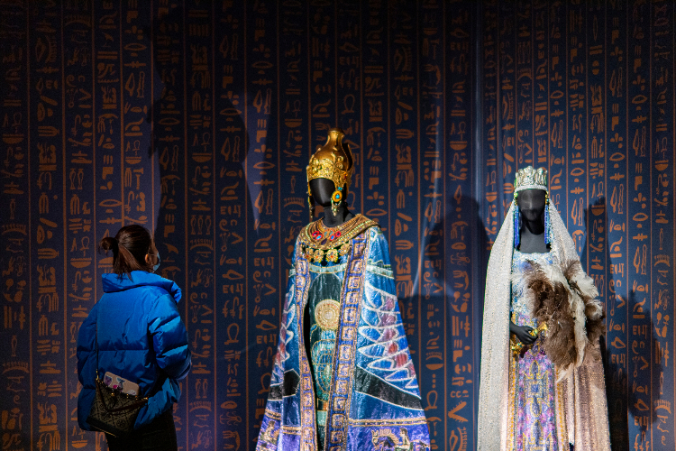 一位女士参观歌剧《阿依达》的服装设计。