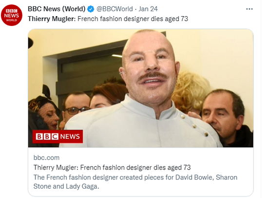 Thierry Mugler。(图片来源:推特截图)