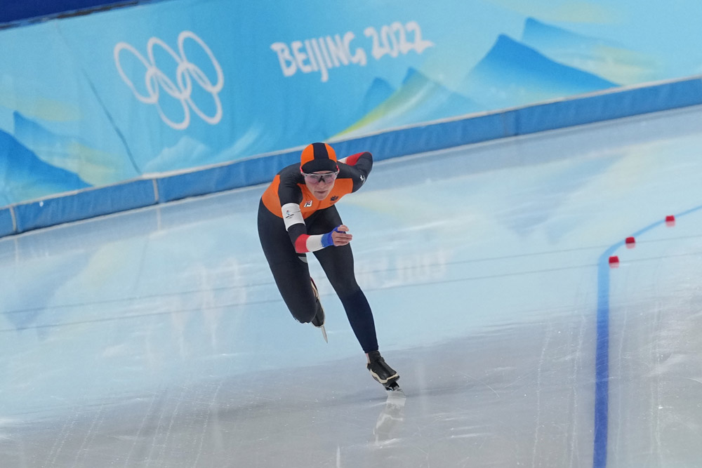 2月10日,北京2022年冬奥会速度滑冰女子5000米比赛在国家速滑馆“冰丝带”举行。荷兰选手伊雷妮·斯豪滕以6分43秒51打破奥运纪录,获得该项目的冠军。(图片来源:中新社)