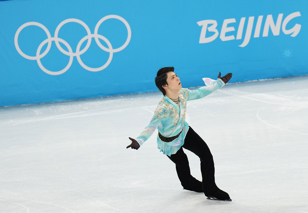 2月10日,北京2022年冬奥会花样滑冰男子单人滑自由滑比赛在首都体育馆举行,图为羽生结弦在比赛中。 (图片来源:中新社)