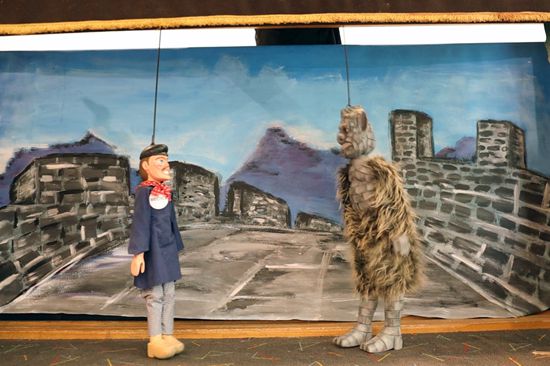 说着,马丁·埃尔森便兴奋地找出了自己专门给长城创作的舞台背景和木偶“长城精灵”表演了起来。他分享,这是自己精心为中国长城创作的乔尔奇与长城守护神“长城精灵”相遇成为好朋友的故事。