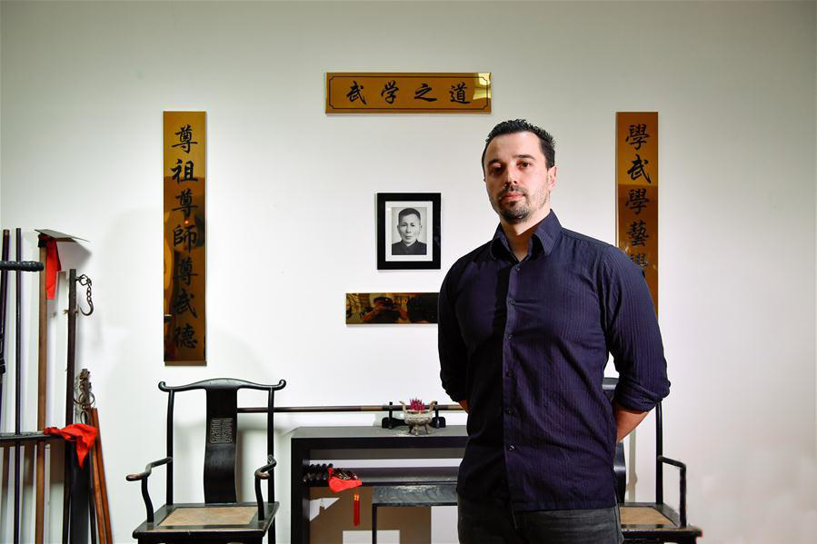 2011年,居洛斯回到巴黎后还开设了自己的武馆,教授佛山白眉拳。(图片来源:新华社)