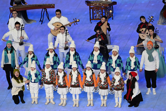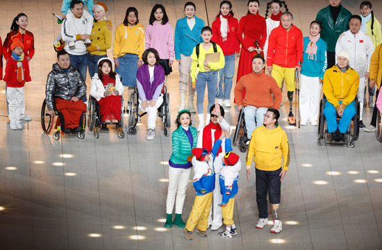 仪式前的表演的《同在蓝天下》,参演者全部为残疾人。他们来自全国各地,因冬残奥会而汇聚在北京,用最美的歌声与旋律,喜迎本届冬残奥会的到来。