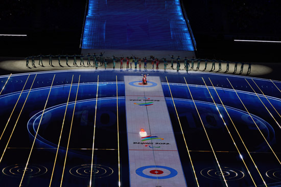 倒计时中,场地中央洁白的冰面渐渐幻化成闪烁的星海。灿烂星辉中,浮现过往12届冬残奥会的光辉历史。展现了中国对残奥精神和所有参与残奥运动、书写残奥历史的国家的尊重。