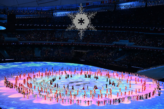 燃烧的火种,从残奥会发源地英国曼德维尔线上采集,传递至中国。当最后一棒火炬手、盲人运动员李端一步步走向“大雪花”造型的主火炬台,用他最有温度的感官能力——触摸,轻抚一片片小雪花。现场安静下来,观众仿佛能感受到他在触摸世界,认知世界。几经摸索,火炬终于插入主火炬台。一簇微光,烛照世界。而后,漫天白色雪花形象的焰火、紫色主题焰火缤纷绽放,展现本届冬残奥会的纯洁、温暖与多彩。