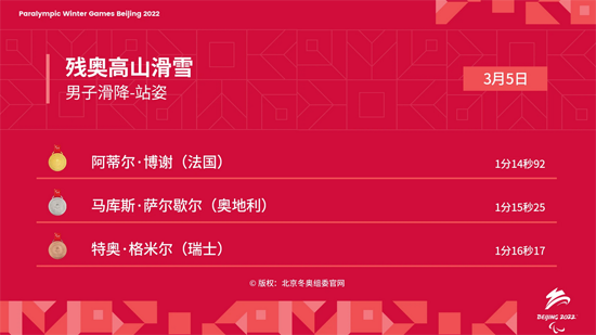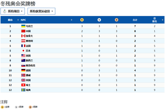 3月5日是北京冬残奥会第一个比赛日,在当日的比赛中欧洲和中国运动员表现良好,尤其是乌克兰代表队,以3金3银1铜的成绩暂时位列奖牌榜首位。