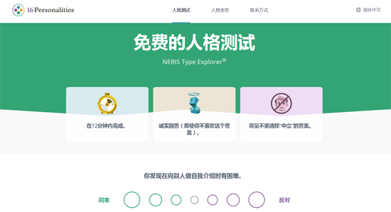 MBTI16型人格测试网站。(图片来源:网页截图)