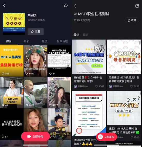 去年年底,韩国推出真人秀综艺《MBTI INSIDE》,一下子将以“MBTI测试”为代表的性格类测试题带火了。小编在抖音、快手等平台搜索“MBTI”或“性格测试”,发现这类话题都有超高关注度,在小红书上,与MBTI相关的笔记已累计超1万篇。豆瓣、知乎等网站衍生出大量以MBTI为小组或讨论区的聚集地,爱好者们踊跃地交换并探讨彼此的测试结果。近期,MBTI测试的相关词条也屡次登上微博热搜榜。