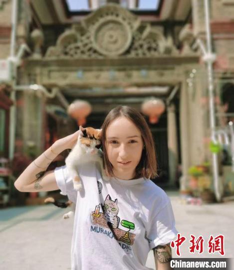 法国姑娘Clarisse(乐盖曦)和她养的猫,在她住的上海石库门建筑前合影。(图片来源:均为受访者供图)