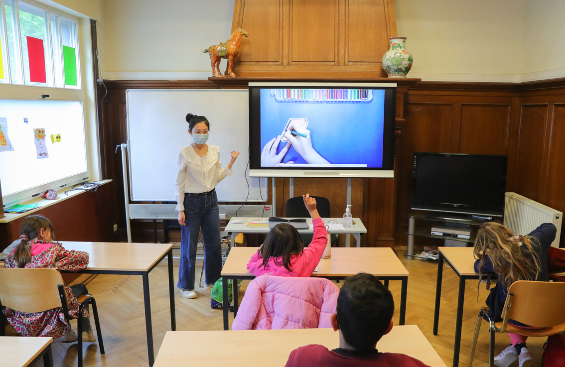 这是4月27日,在比利时布鲁塞尔孔子学院,杨迪在儿童汉语班上授课。(图片来源:本文图片均自新华社)
