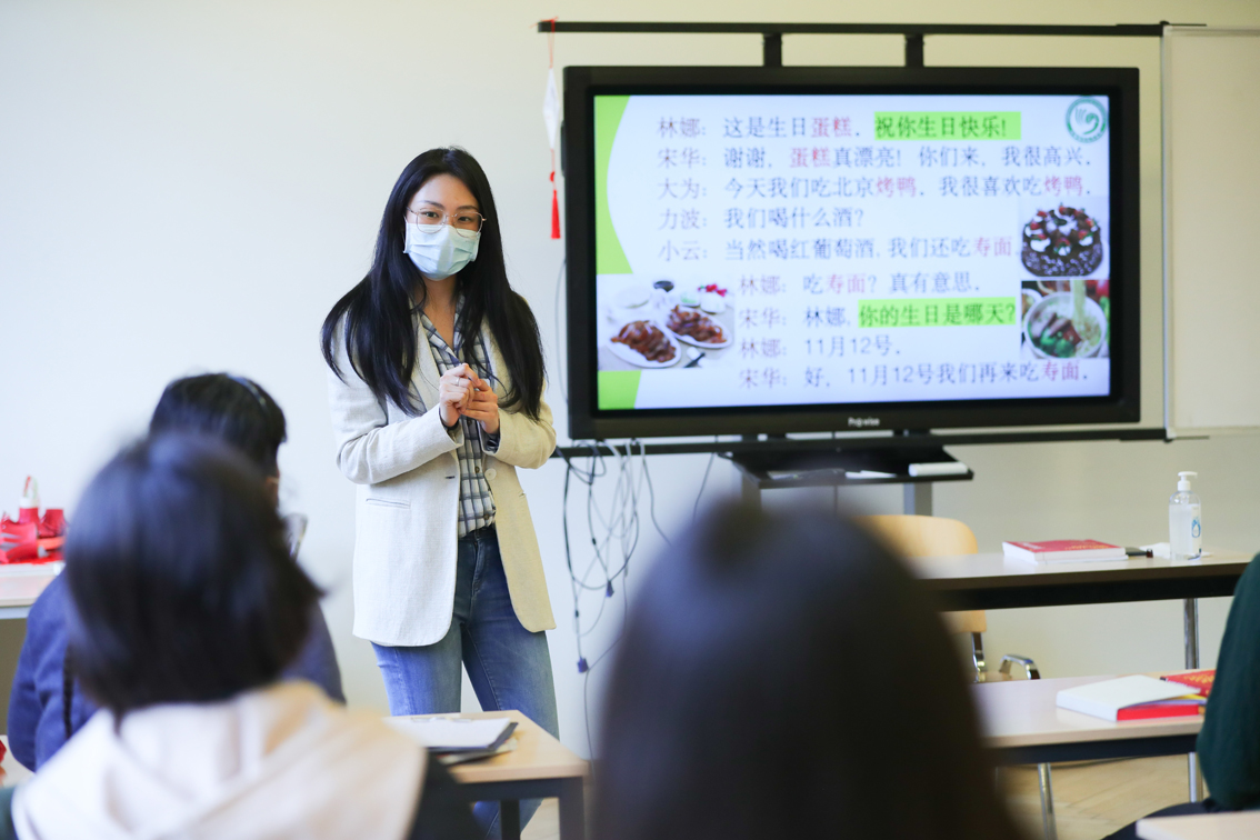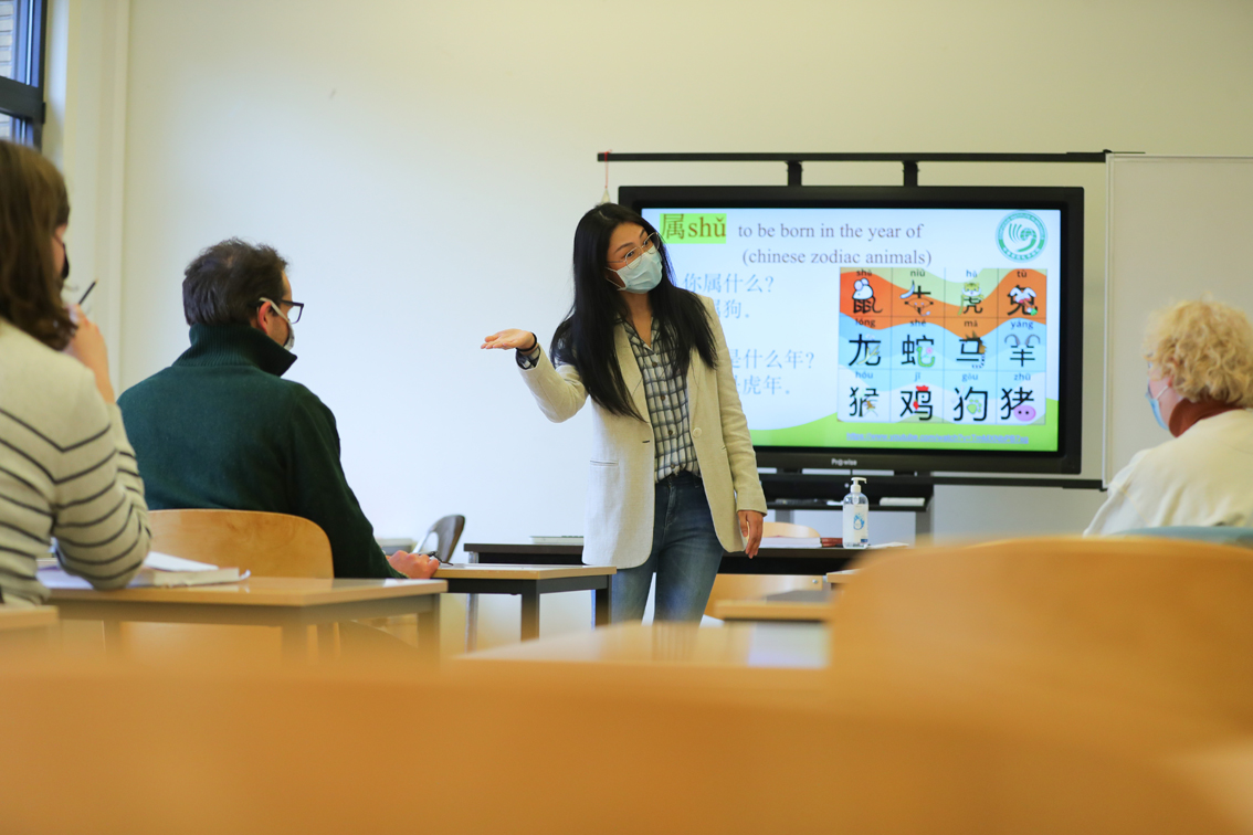 她于2021年8月来到比利时,在这里从事汉语教学等工作。她目前教三个成人汉语班和两个儿童汉语班,每个班有5至9名来自不同国家的学生。
