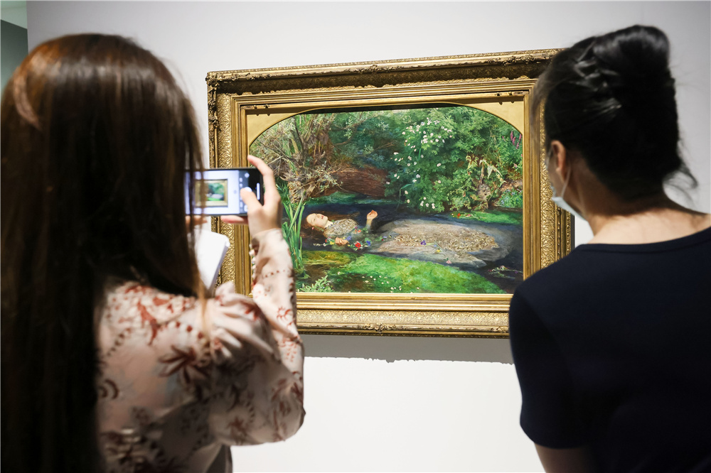 7月6日,参观者在浦东美术馆观看英国泰特美术馆的镇馆之宝《奥菲莉娅》。(图片来源:新华社)