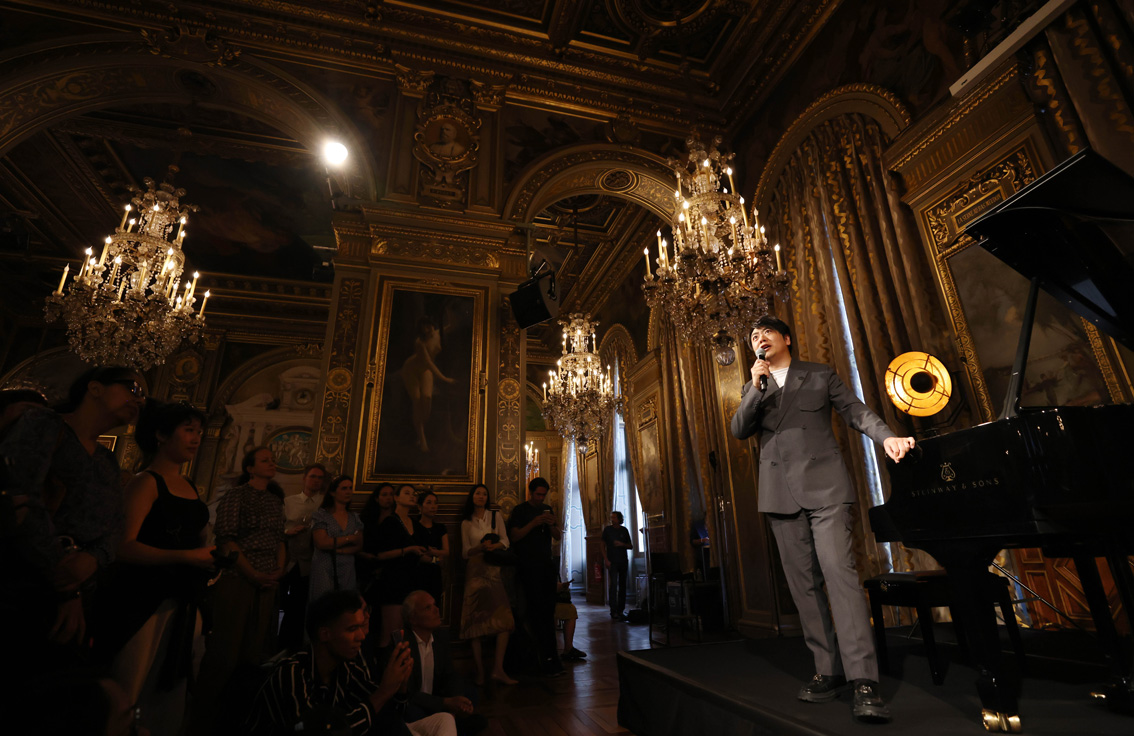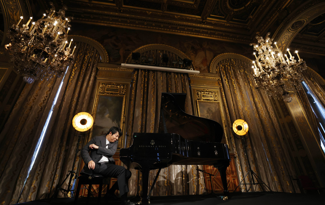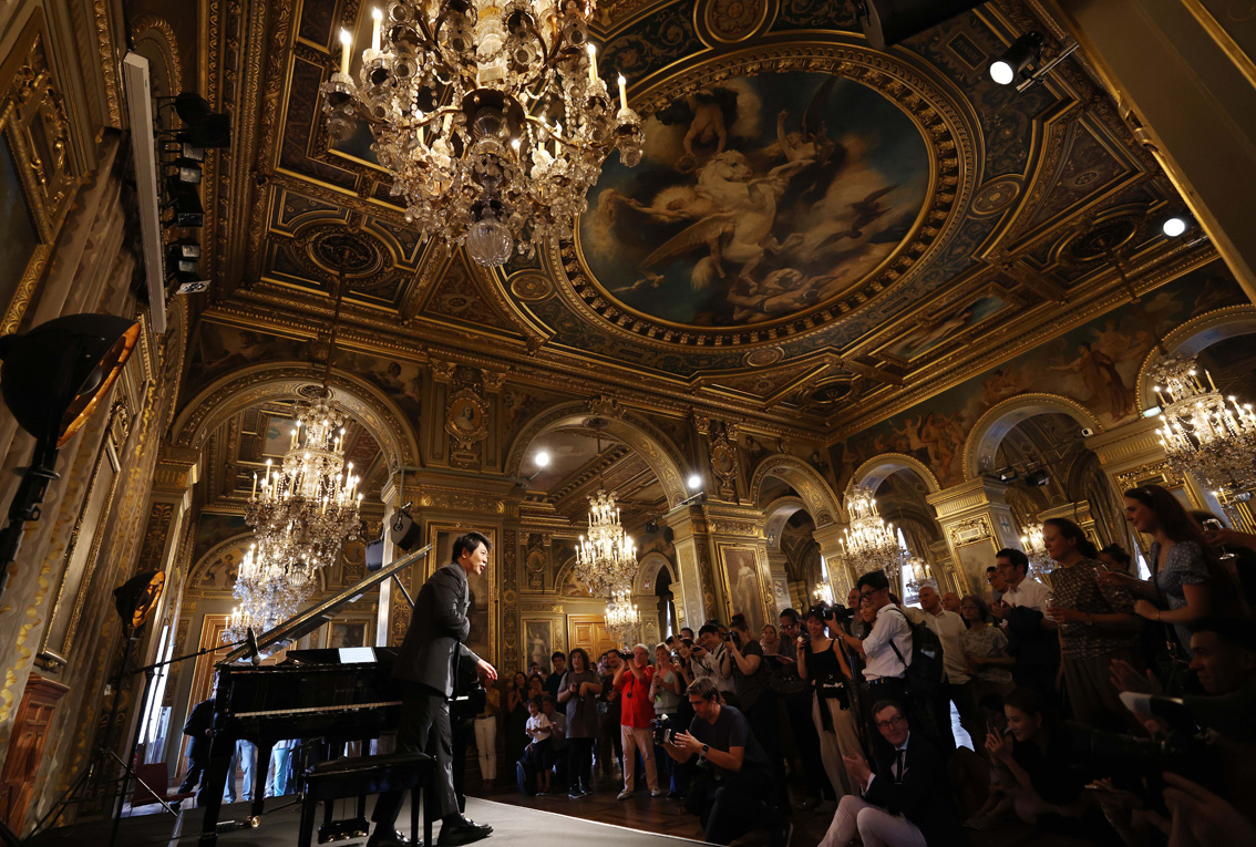 9月1日,郎朗在法国巴黎市政厅出席新专辑《郎朗的迪士尼》发布会。(图片来源:新华社)