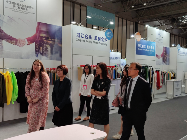 包玲公使和张慧娟副总代表参访中国展商展位。
