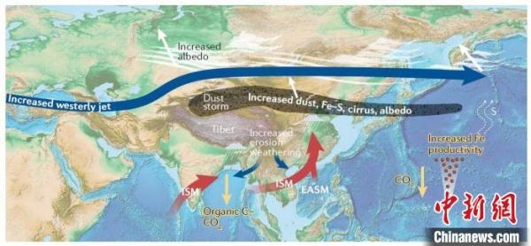 亚洲气候重组与高原隆升的全球影响。(图片来源:中新网)