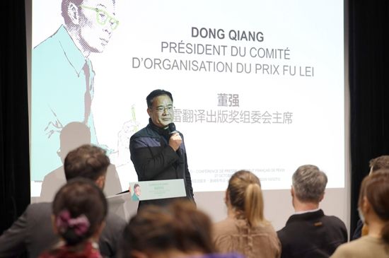 2022年10月27日,傅雷奖组委会主席董强在发布会上介绍评选过程。当日,第14届傅雷翻译出版奖(傅雷奖)新闻发布会在北京法国文化中心举行,现场揭晓十部入围终评作品名单,共有5部社科类译作、5部文学类译作入围。据介绍,本届傅雷翻译出版奖的最终获奖作品,将于11月19日至20日在北京举行的颁奖典礼上揭晓。(图片来源:本文图片均由欧洲时报特约记者卞戈 摄)