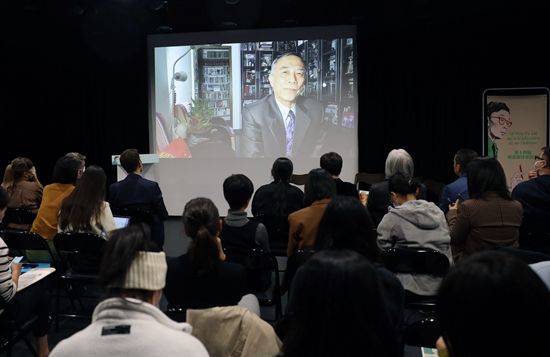 2022年10月27日,活动现场,翻译家、2022年傅雷翻译出版奖评委会主席余中先通过视频发言。