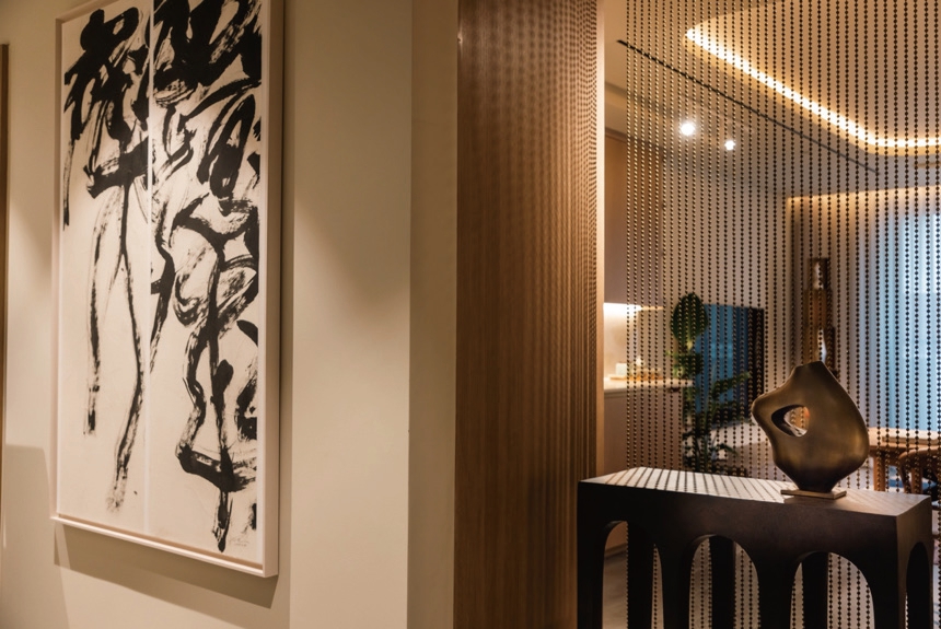 我们在这套公寓中见到了它的设计者——瞿铮。他说,来参观的华人买家往往惊叹于当代中式之美及其所蕴含的文化巧思,而国际买家也被这份独特的美所打动。