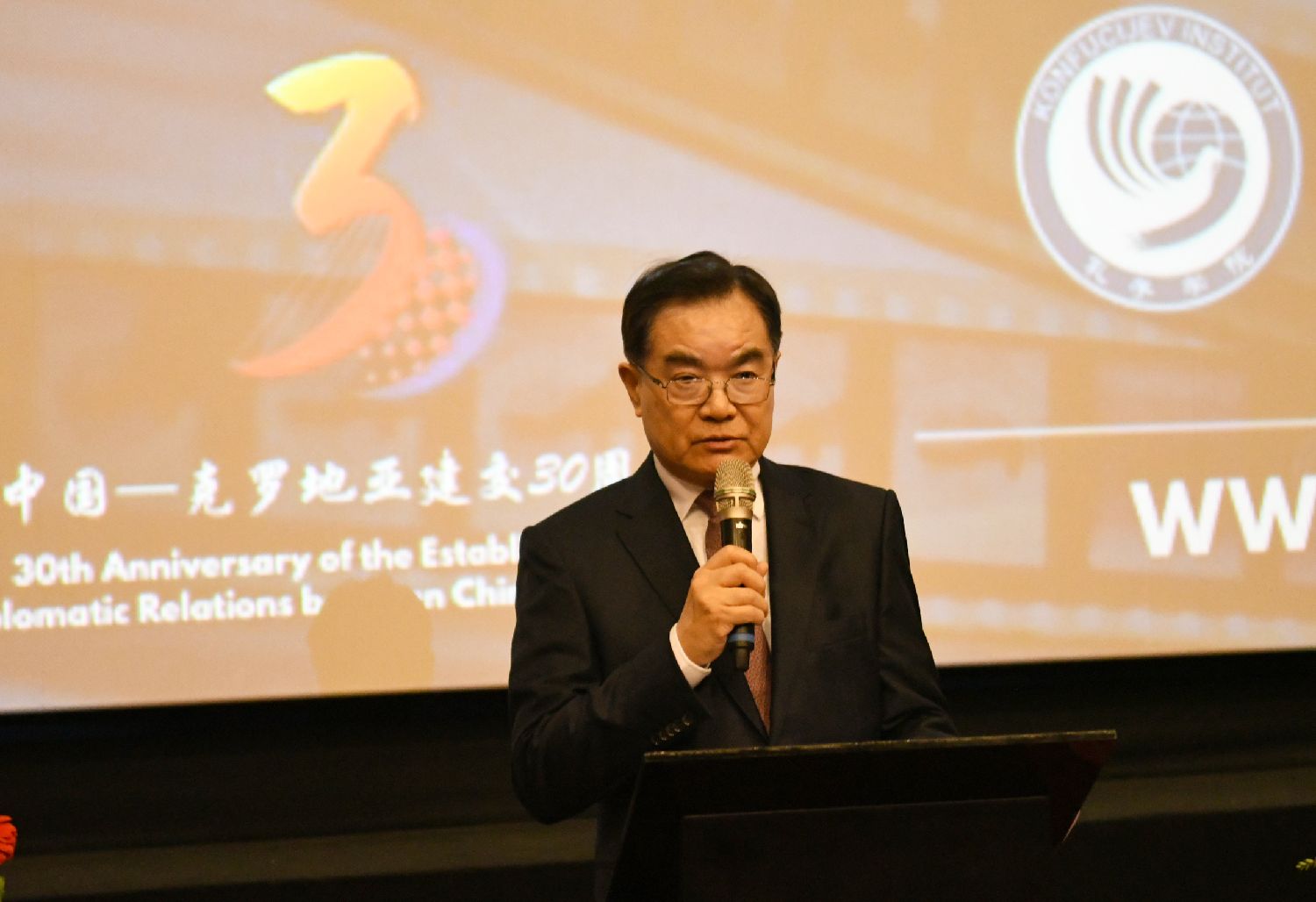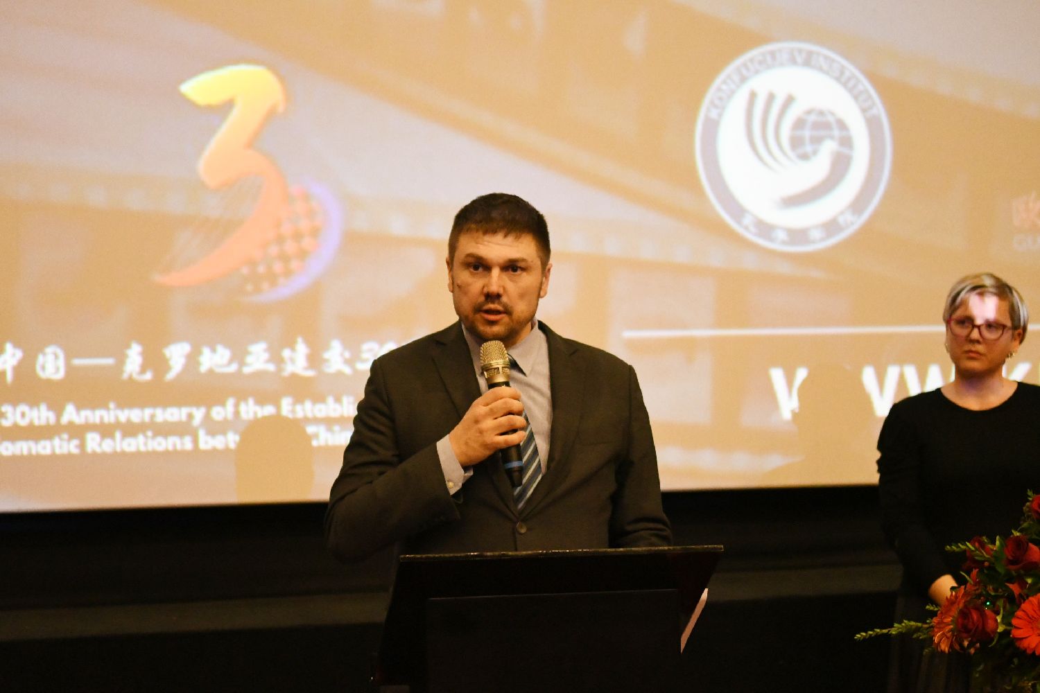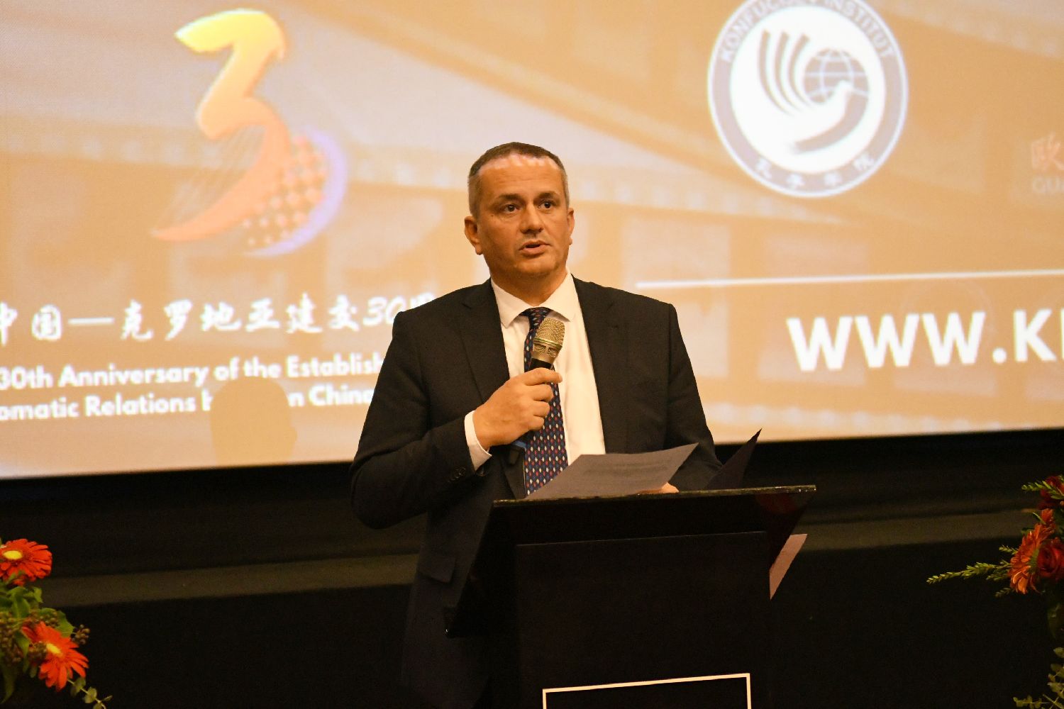 帕维契奇在致辞中说,今年是克中两国建交30周年,也是萨格勒布大学孔子学院成立10周年。10年来,100多位来自中国的汉语教师在孔子学院教授和培养了超过1万名克罗地亚学生,堪称两国文化交流合作的典范。