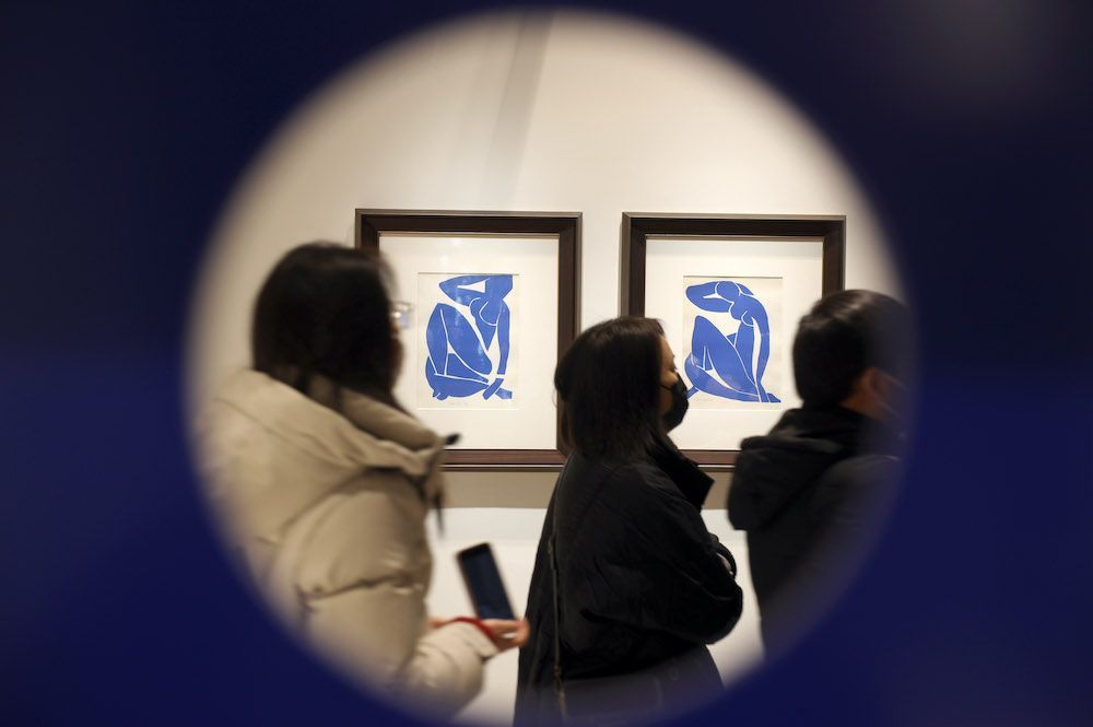2023年1月5日,观众欣赏法国画家亨利·马蒂斯1958年创作的版画《蓝色裸体》。