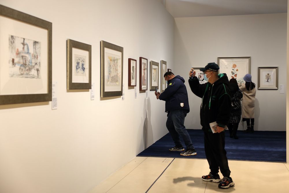 2023年1月5日,西班牙画家萨尔瓦多·达利的版画作品吸引观众争相拍摄。