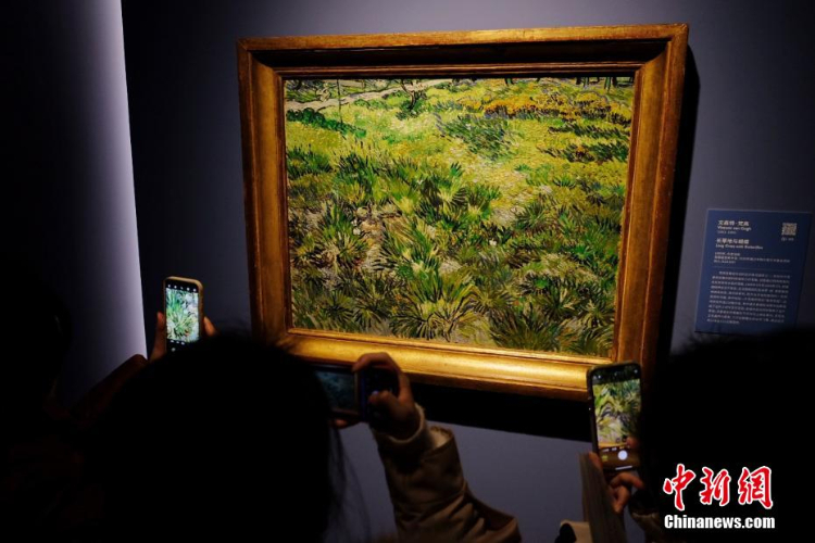 梵高作品《长草地与蝴蝶》在上海博物馆展出。(图片来源:中新网)