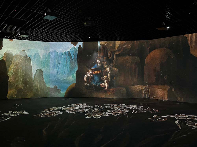 上海博物馆与品源文华共同打造“NG Treasures再现·大师|沉浸式光影体验”,展览通过动画特效与光影技术,以数字展陈的方式展出“从波提切利到梵高:英国国家美术馆珍藏展”的3件展品。(图片来源:《广州日报》)
