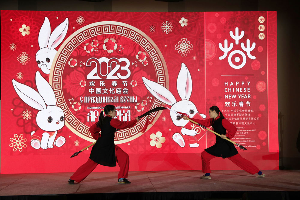 由中国文化和旅游部与中国驻俄罗斯大使馆联合主办的“欢乐春节——中国文化庙会”开幕式20日在莫斯科阳光酒店举行。中国驻俄大使张汉晖、俄罗斯文化部长柳比莫娃、俄中友协第一副主席库利科娃以及来自文艺、教育、科技、经济、媒体等俄社会各界代表共500余人参加活动。