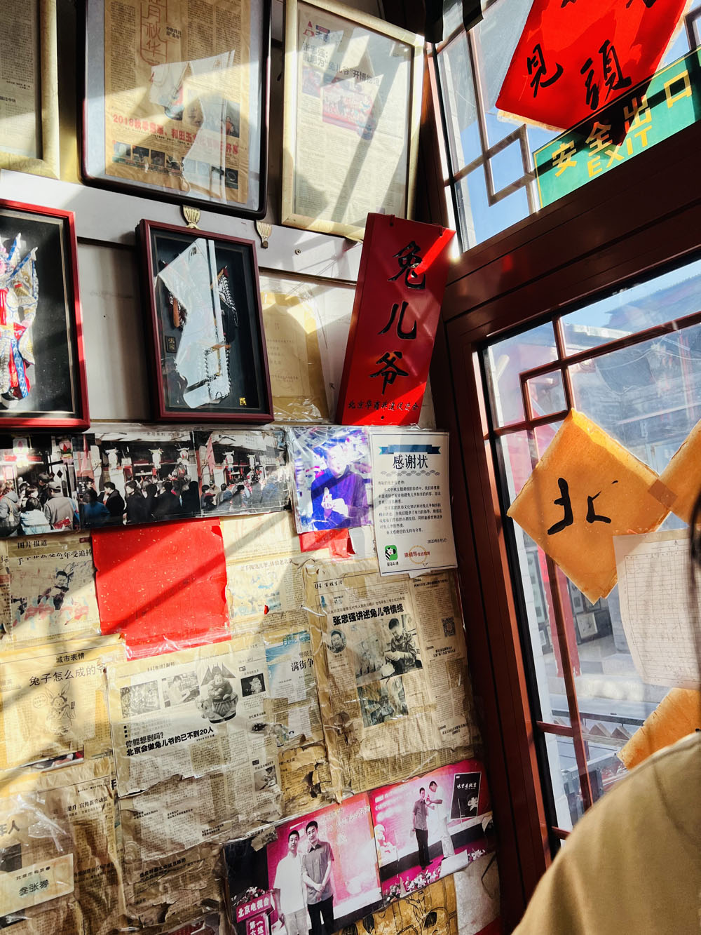 北京兔儿爷店里有很多老照片及过往报道剪报,展示着兔爷文化的传承。