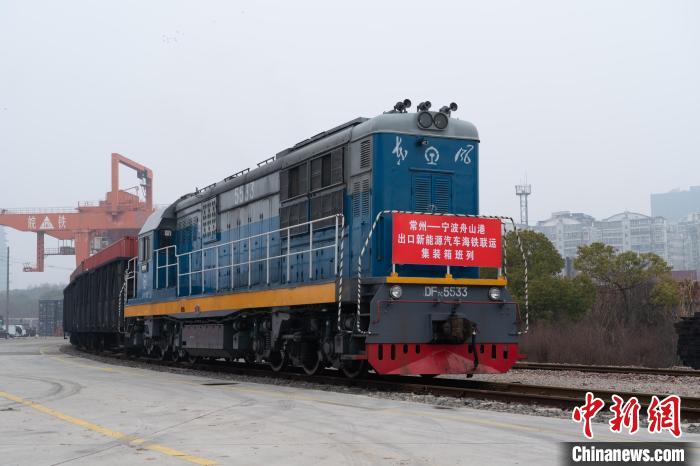 这是长三角铁路部门在今年春年后开出的首趟新能源整车出口班列。