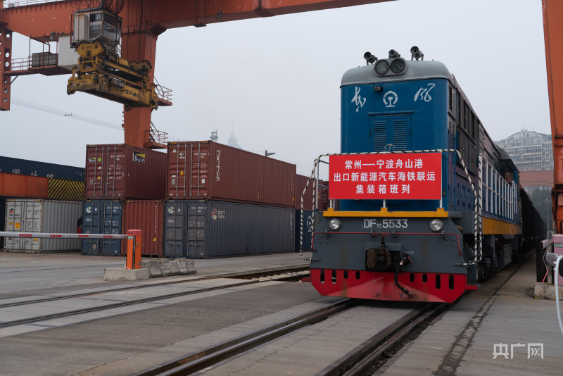 早在去年10月,中国铁路上海局集团有限公司南京货运中心与国内某自主品牌汽车常州基地达成运输合作意向,双方就商品车整车运输模式、组织计划、协调机制等进行磋商研究,确定海铁联运作为该基地新能源整车出口运输新模式。图为常州至宁波舟山港出口新能源汽车海铁联运班列8日开行。(图片来源:央广网)