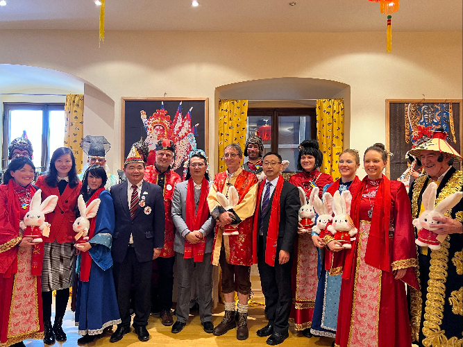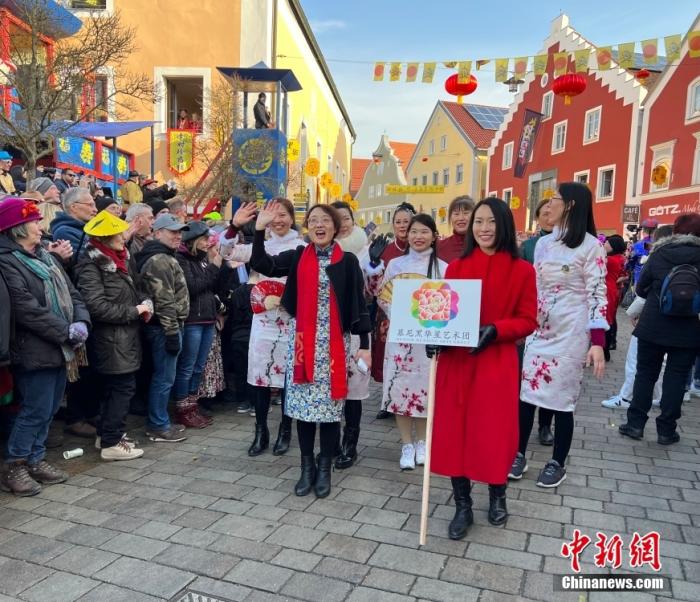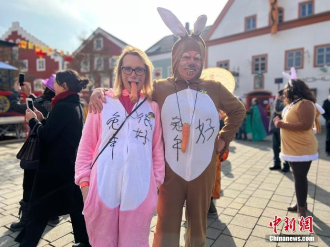 中新社报道,当天活动亮点纷呈。红灯笼等节庆装饰品烘托节日喜庆气氛;“嘿 华人”“巴伐利亚中国”“祝你生活愉快”等汉字幅沿街而挂;“李时珍药铺”“悦来客栈”等“商号字样”悬出窗外;还有民众装扮成兔子模样问候“兔年好”。