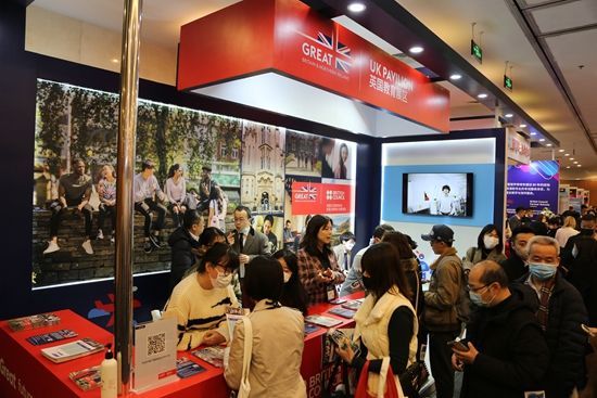 2月17日,参观者在第23届中国国际教育展英国展区咨询。
