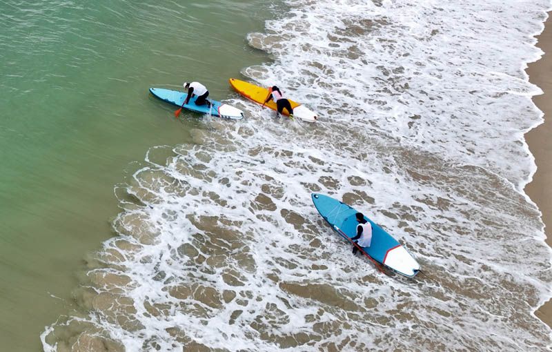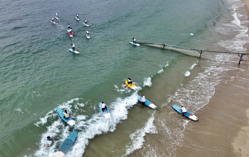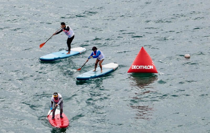 3月14日,迪卡侬中国与法国驻华使馆及领馆共同主办的“运动向巴黎”活动在深圳大梅沙国际水上运动中心举行,吸引众多爱好桨板运动的选手参加。(图片来源:中新社)