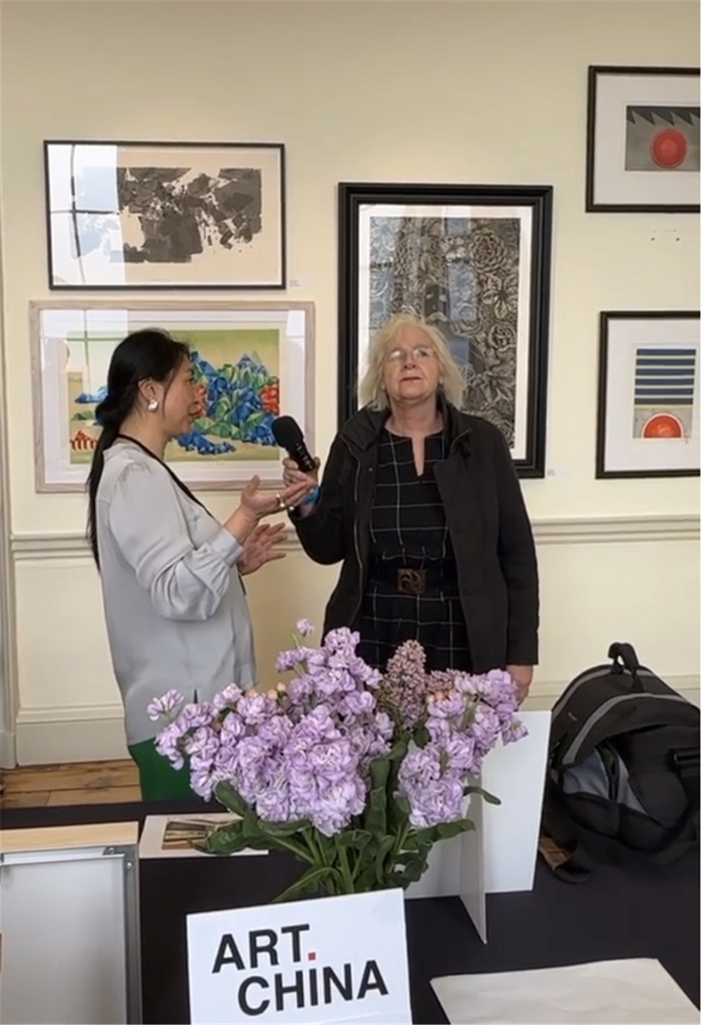 (ArtChina画廊创始人刘爱民接受英国媒体采访。欧洲时报万萌珂 摄)