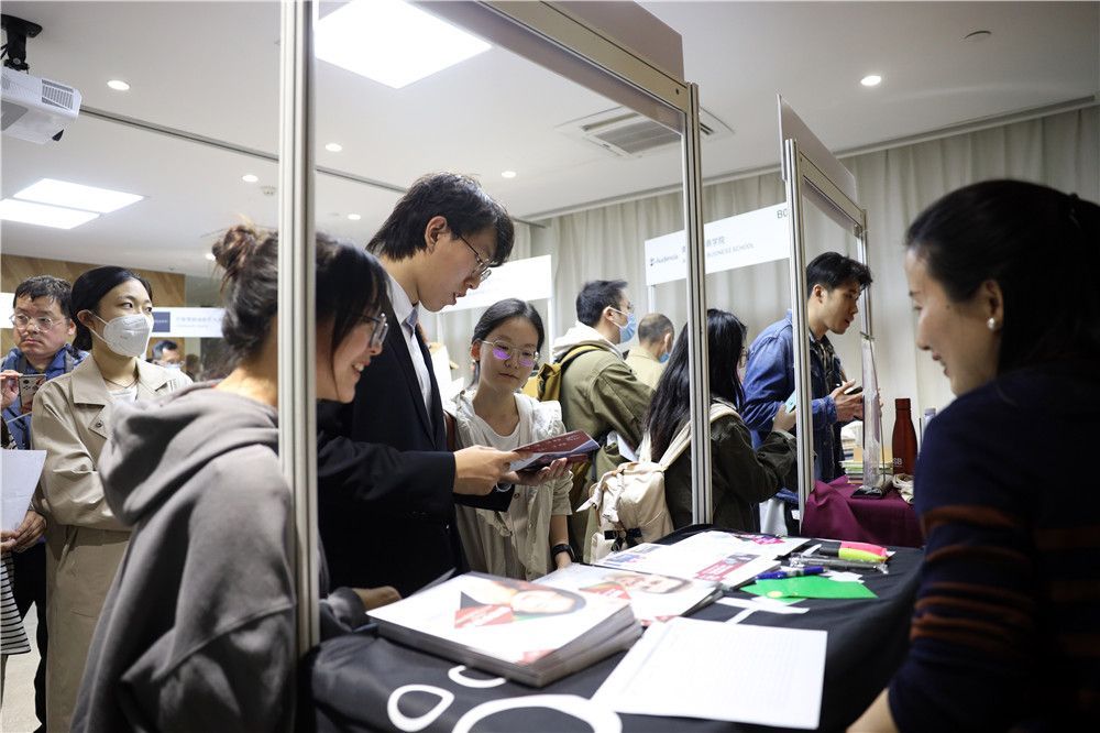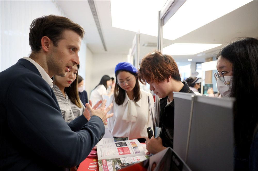 2023年4月2日,图卢兹商学院招生负责人在现场为中国学生答疑解惑。