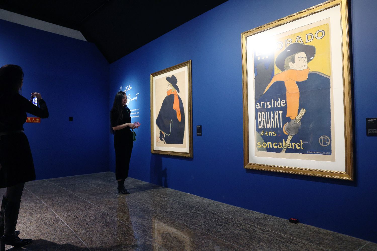 2023年4月19日,现场展出罗特列克代表性海报作品《埃尔多拉多:阿里斯蒂德·布鲁恩特》吸引参观者留影。