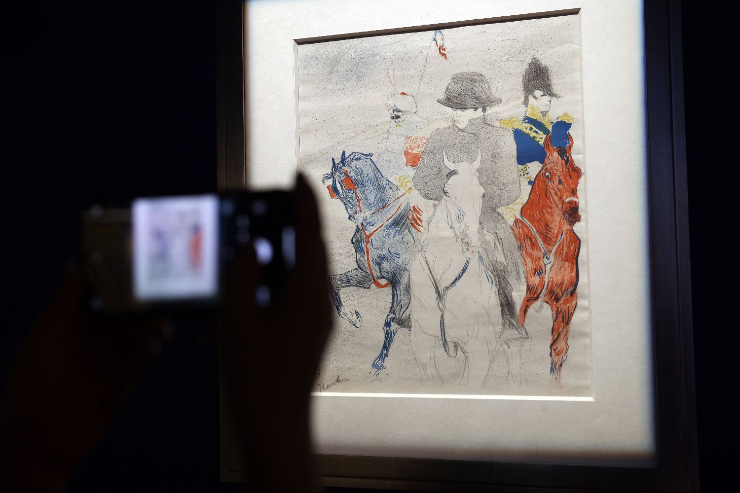 2023年4月19日,罗特列克的彩色石板画《拿破仑》吸引参观者拍摄。